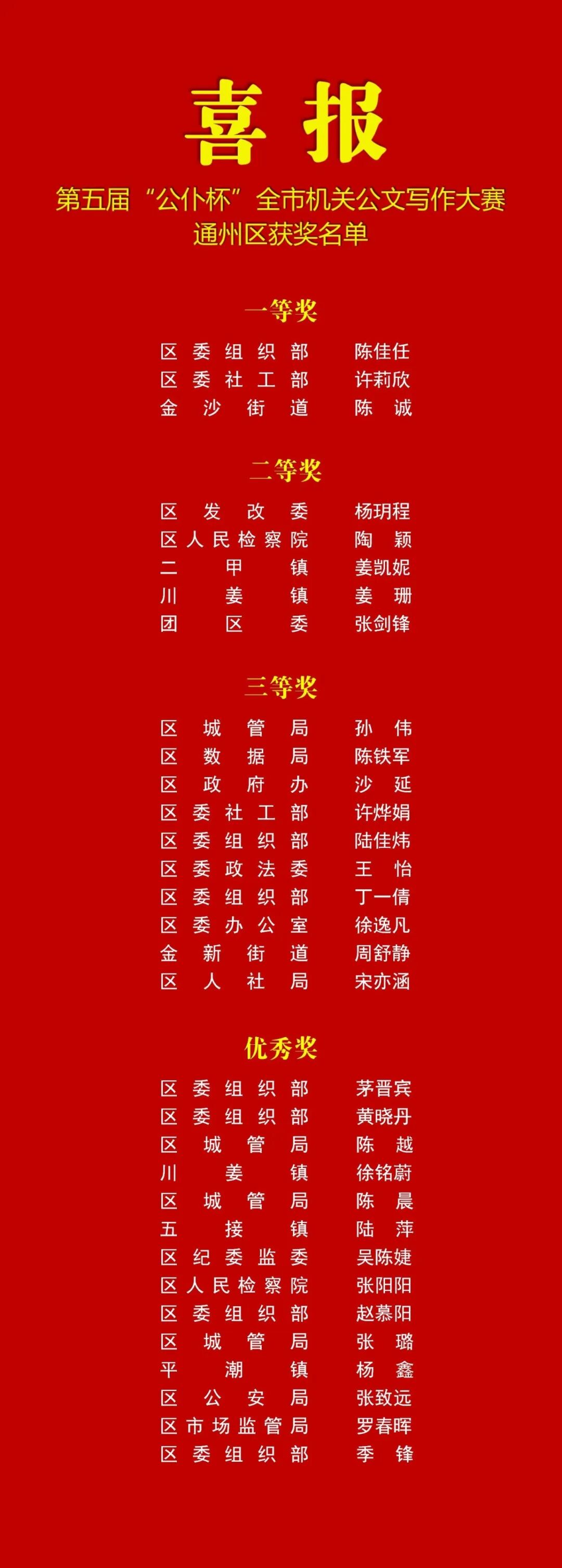 【喜報】通州區(qū)32名年輕干部在第五屆“公仆杯”全市機關(guān)公文寫作大賽上取得佳績